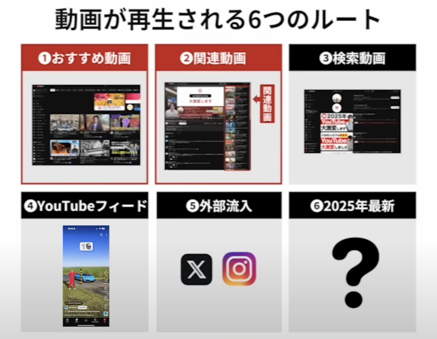 例えば、動画が再生される6つのルートを理解し、アルゴリズムが評価する基準を押さえること。
