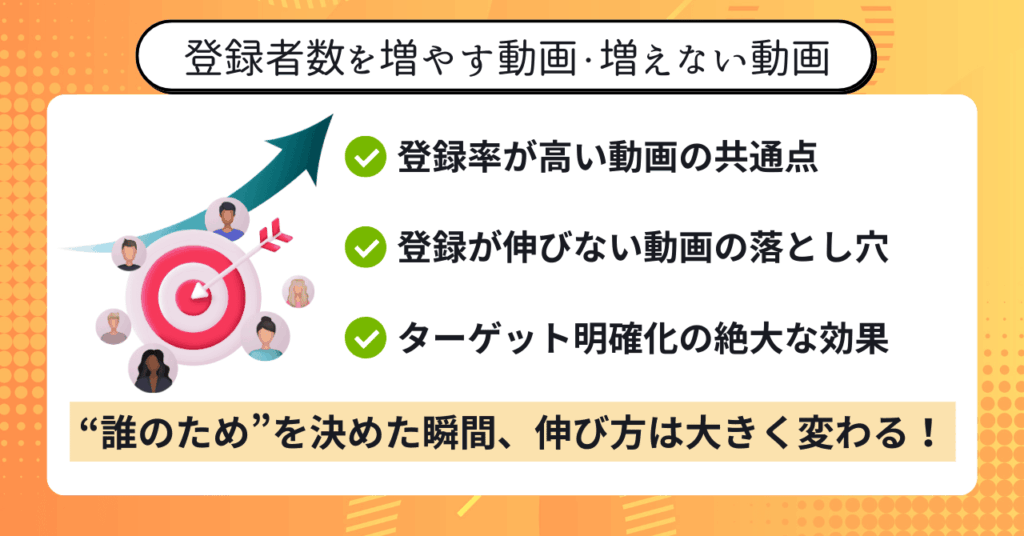 しかし、数字を意識するあまり、視聴者がなぜ登録ボタンを押すのかを理解できていないケースが多く見られます。