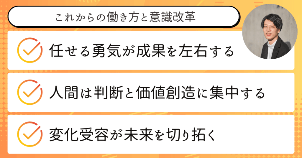 変化を受け入れ、試し、任せ、AIと共に成果を出していく姿勢こそが、これからの時代に求められる本当の力です。