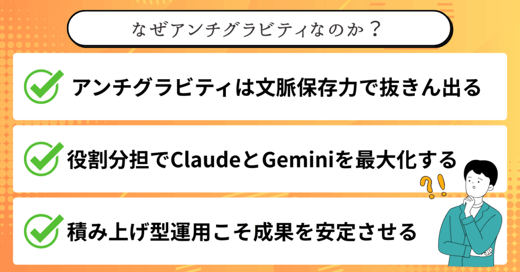 AIエージェント「Antigravity」を活用し、Web制作の工程を自動化する方法を解説した記事です。AIを単なる補助ツールではなく、リサーチや生成を含めた作業基盤として運用する発想が紹介されています。本文で解説されている「AIを基盤として固定する」「ナレッジを蓄積する」という運用イメージをより具体的に理解できます。