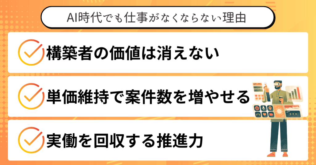 また、AIが進化しても、構築者の価値は消えていません。