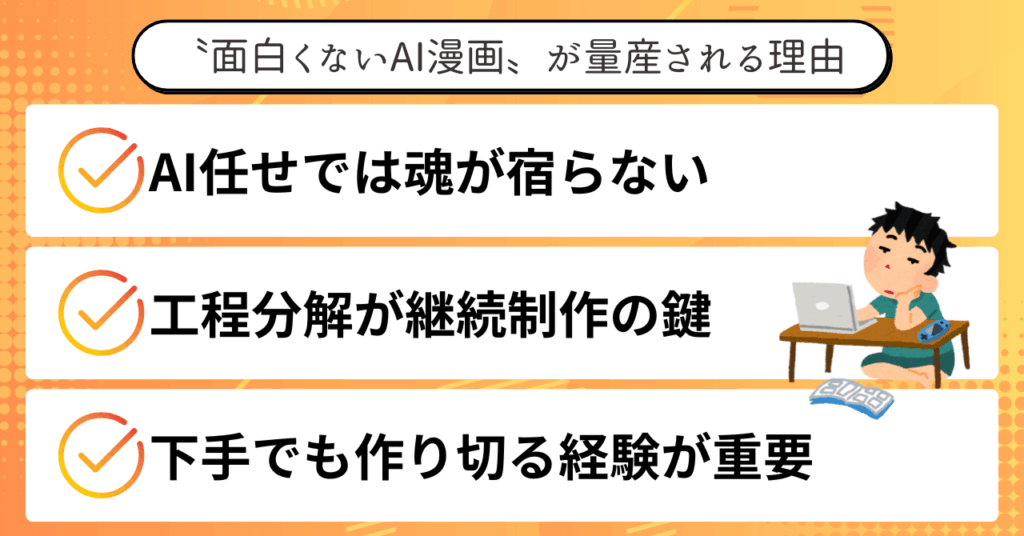 AIを使えば〝誰でも漫画は作れる〟けれど、〝面白い漫画〟は別物だということ。