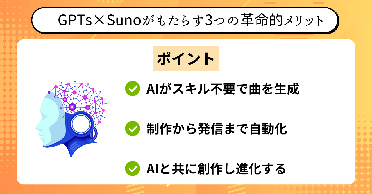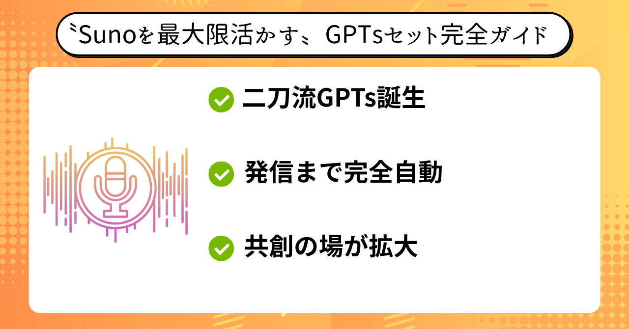 本記事では、そんな革新的な仕組みを持つ〝GPTs×Suno〟を軸に、