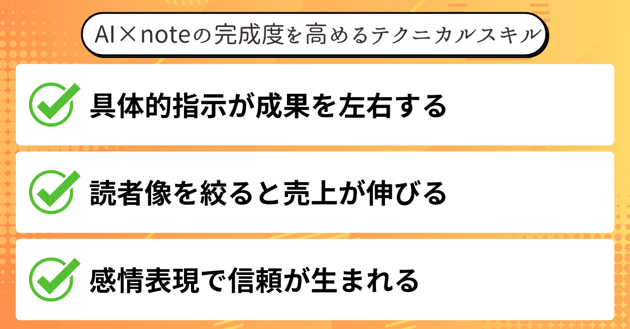 つまり、人間の感情や経験を補完する形でAIを使うことで、読者の共感を呼ぶnoteが完成するのです。