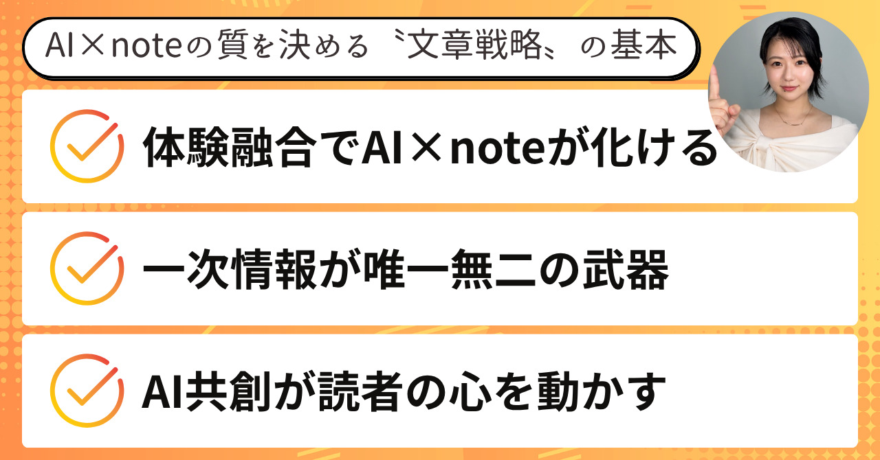 それは、AI×noteが単なる文章コンテンツではなく、〝経験×AI〟のかけ合わせによって価値を生み出しているからです。