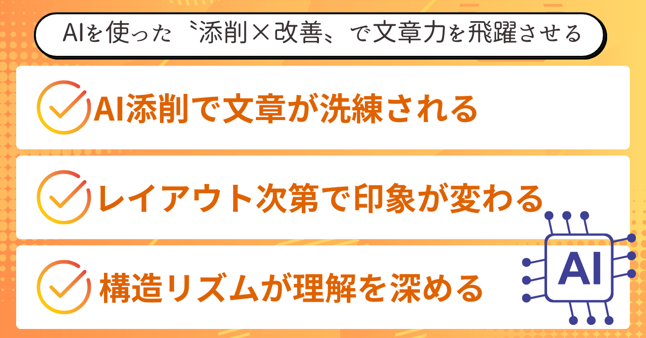 AIを活用する目的が明確になると、プロンプトの設計も文章の品質も自然と上がります。