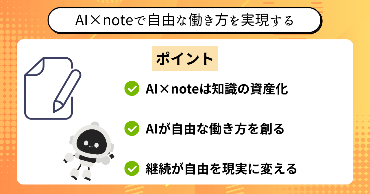 AI×noteは、将来の自分に〝働いてもらう仕組み〟を作る最強のツールと言えるでしょう。