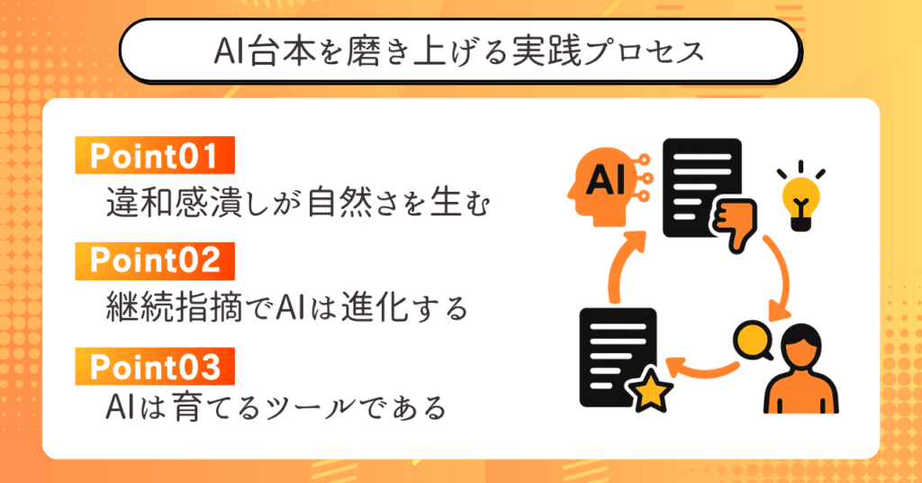 AIの出力を“本人の言葉”に仕上げる技術こそが、次世代の台本ライターに求められる本質です。