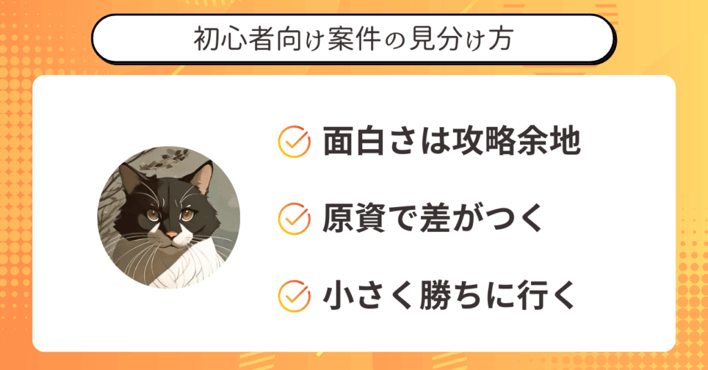 だからこそ、少額でも原資を用意し、攻略余地のある案件を選ぶことが現実的な第一歩になります。