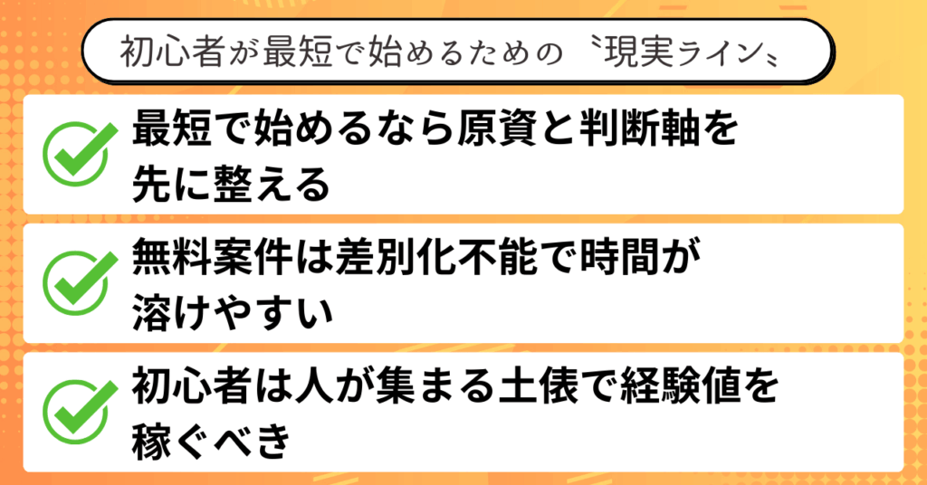 初心者が失敗しやすい理由は明確で、〝完全無料〟や〝誰でも同じ作業〟に寄りすぎるからです。