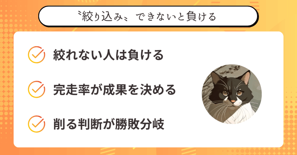 - 作業量よりも〝選ぶ案件〟が結果を左右する