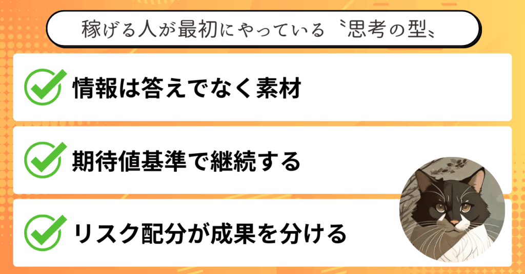 この構造を理解せずに、「もらえたらラッキー」で動く人ほど、期待値の低い行動を繰り返してしまいます。