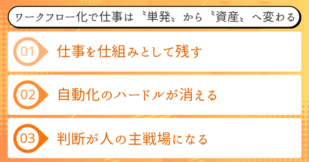 ワークフロー化で仕事は〝単発〟から〝資産〟へ変わる