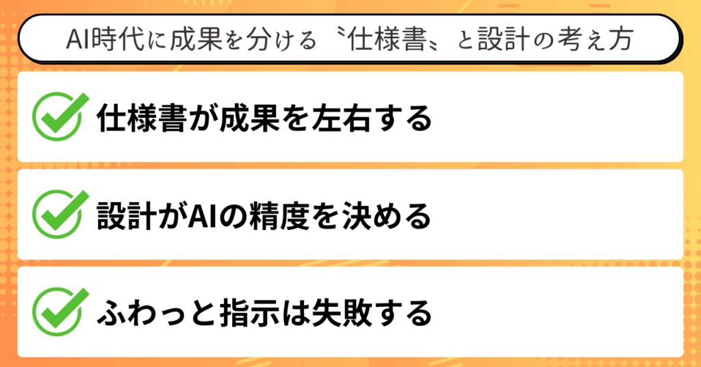 成果を分けるのは、〝どんな仕様書を書くか〟〝どんな判断軸を渡すか〟です。