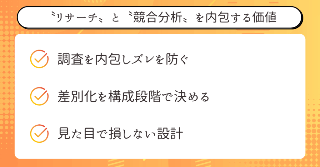 リサーチを飛ばさず、最初から組み込めるのは本当に大きいですね。作ってから悩むより、作る前に勝ち筋を見つける方がずっと楽ですよ!