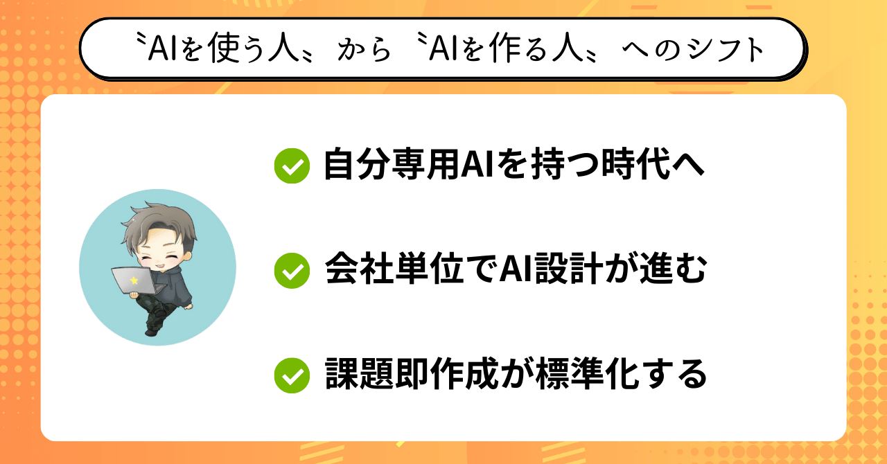 AIを〝使うだけの存在〟で終わるか、〝自分仕様に作る存在〟になるか。