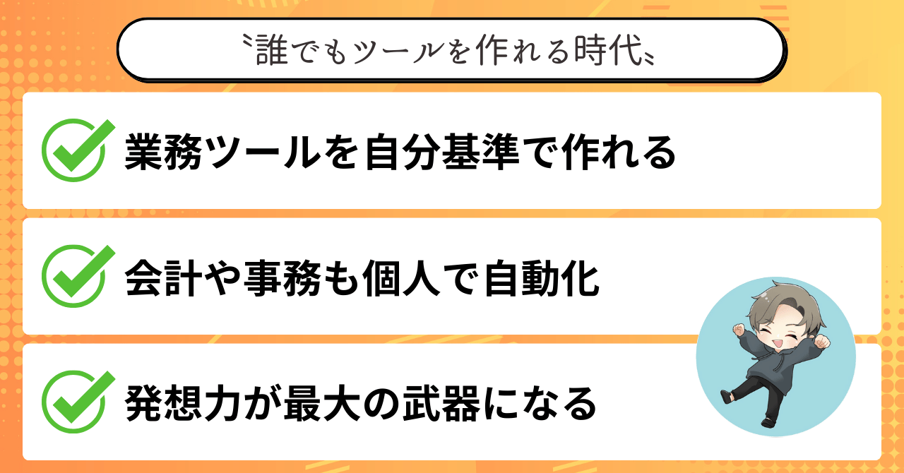 むしろ、これからの時代は〝誰もがAIを使って自分専用のツールを作る側〟になるそんな未来が、すぐそこまで来ています。