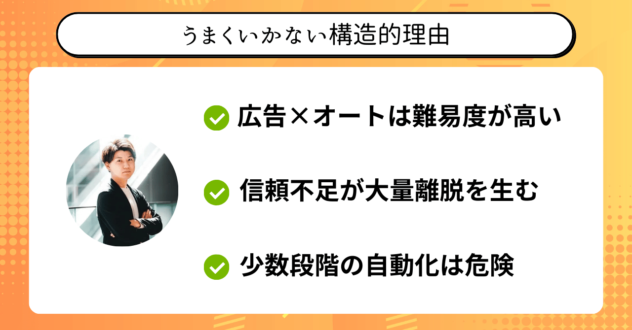 まずは、〝オート化すれば売れる〟という幻想を手放すことが、正しいスタートになります。