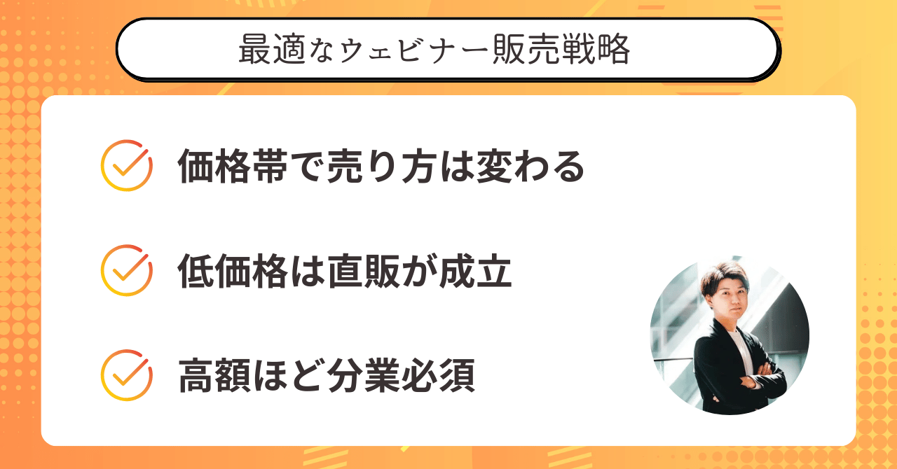 価格帯に応じて、直販・個別相談・テレセールの役割を明確に切り分ける。