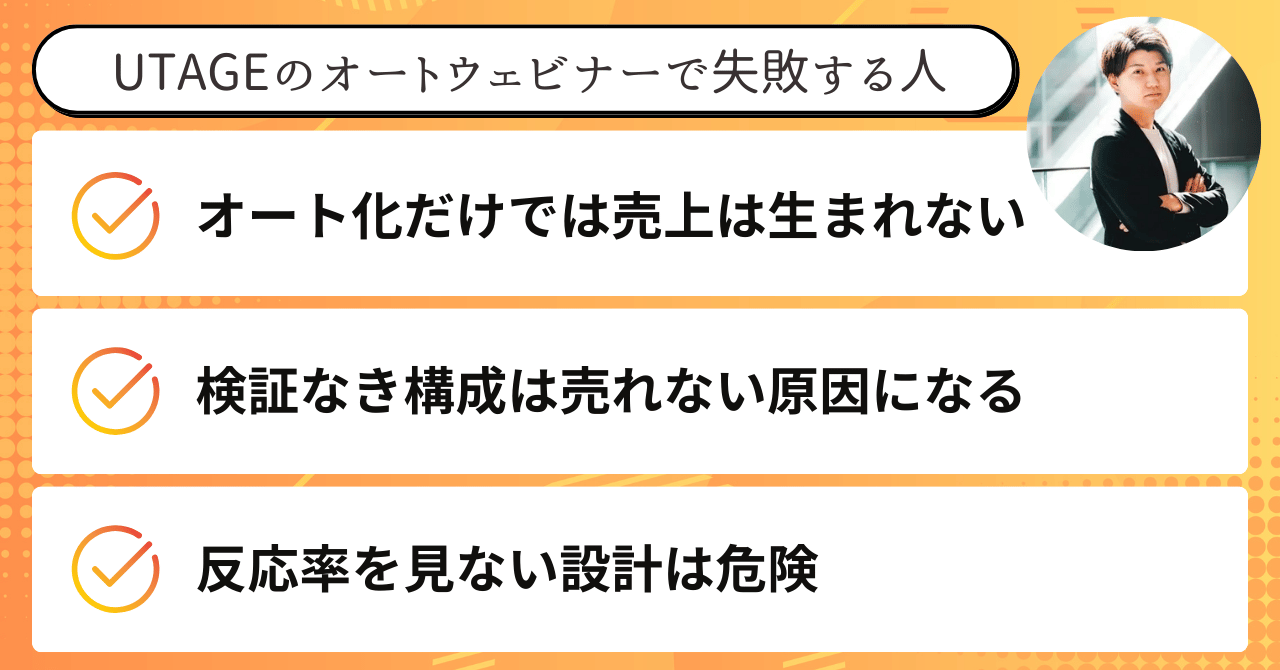 UTAGEのオートウェビナーで失敗する人に共通する落とし穴
