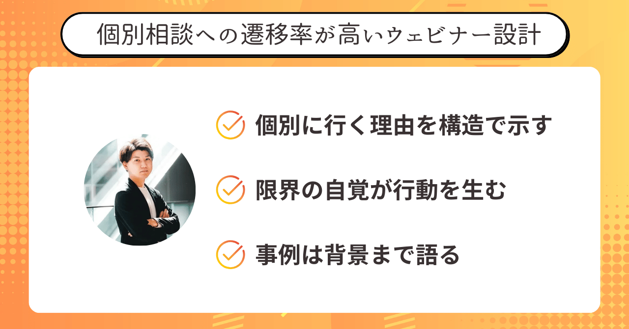 オートウェビナーを否定するのではなく、〝個別を活かすための装置〟として使う。
