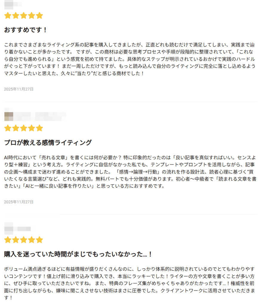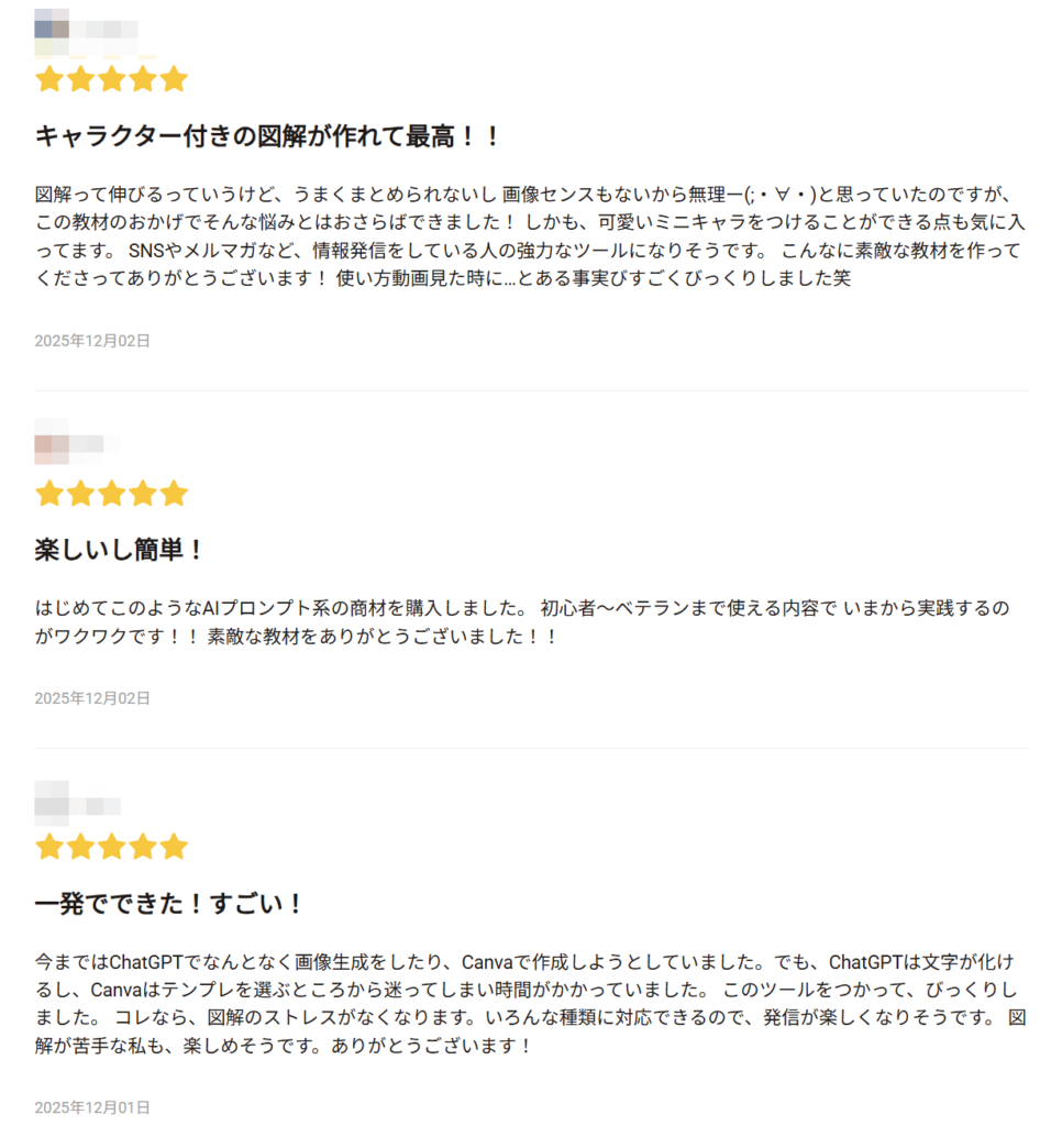• 文字化け修正法・売れるコピー解説動画・ジャンル別プロンプト10選などの購入者限定特典