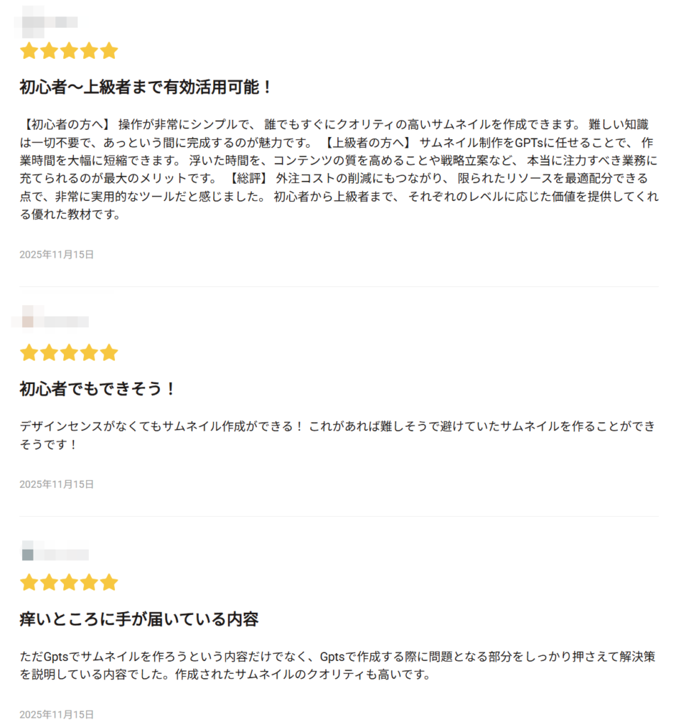 サムネ制作に時間を奪われている人や、「素人感ゼロのサムネを自分で量産したい」人にお勧めの内容です。