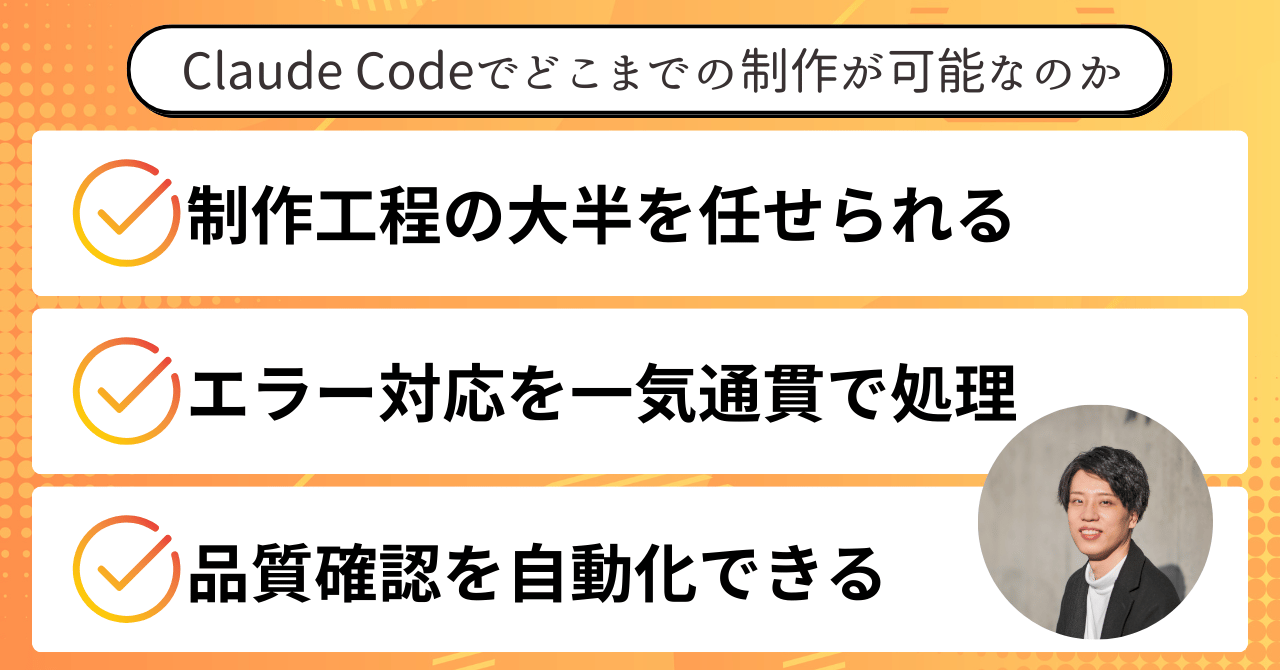 この部分をClaude Codeが肩代わりしてくれることで、人間は〝考えるべきところ〟に集中できるようになります。