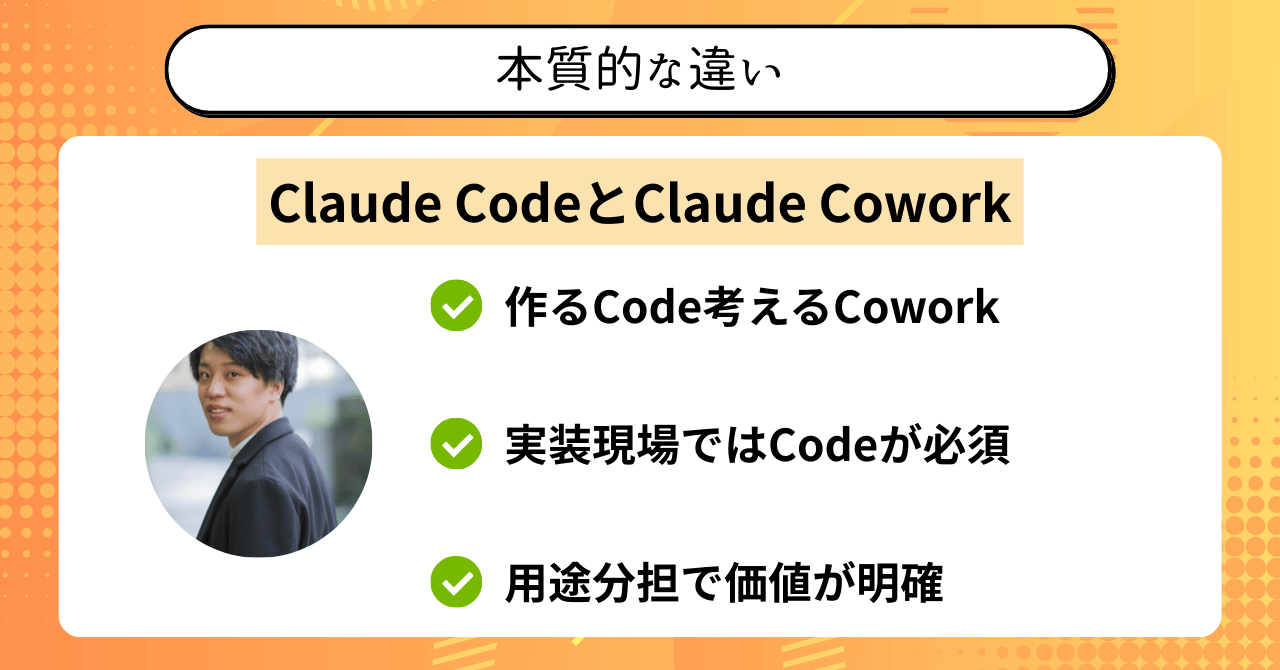 - Claude Coworkとの違いはどこにあるのか