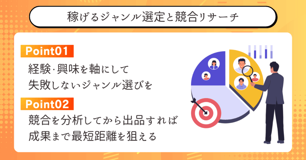 この章では、ジャンル選びの考え方から、競合リサーチの方法、リサーチシートの活用ポイントまでを体系的に解説していきます。