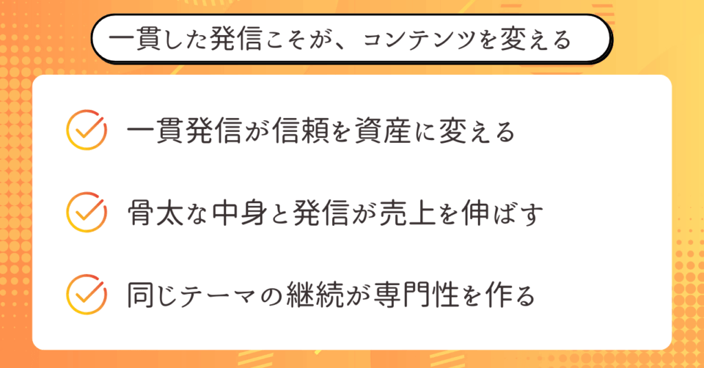 もし今、コンテンツ販売が一過性で終わってしまっているなら、商品を疑う前に、設計・文脈・発信の一貫性を見直してみてください。
