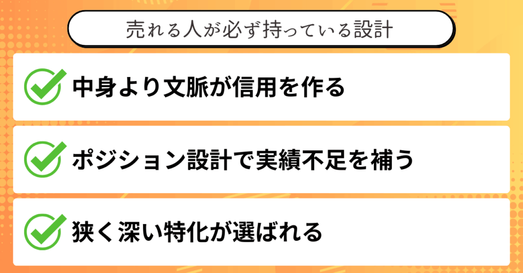 ここからは、売れる人が持っているコンテキストの作り方と、ポジションの取り方を解説していきます。