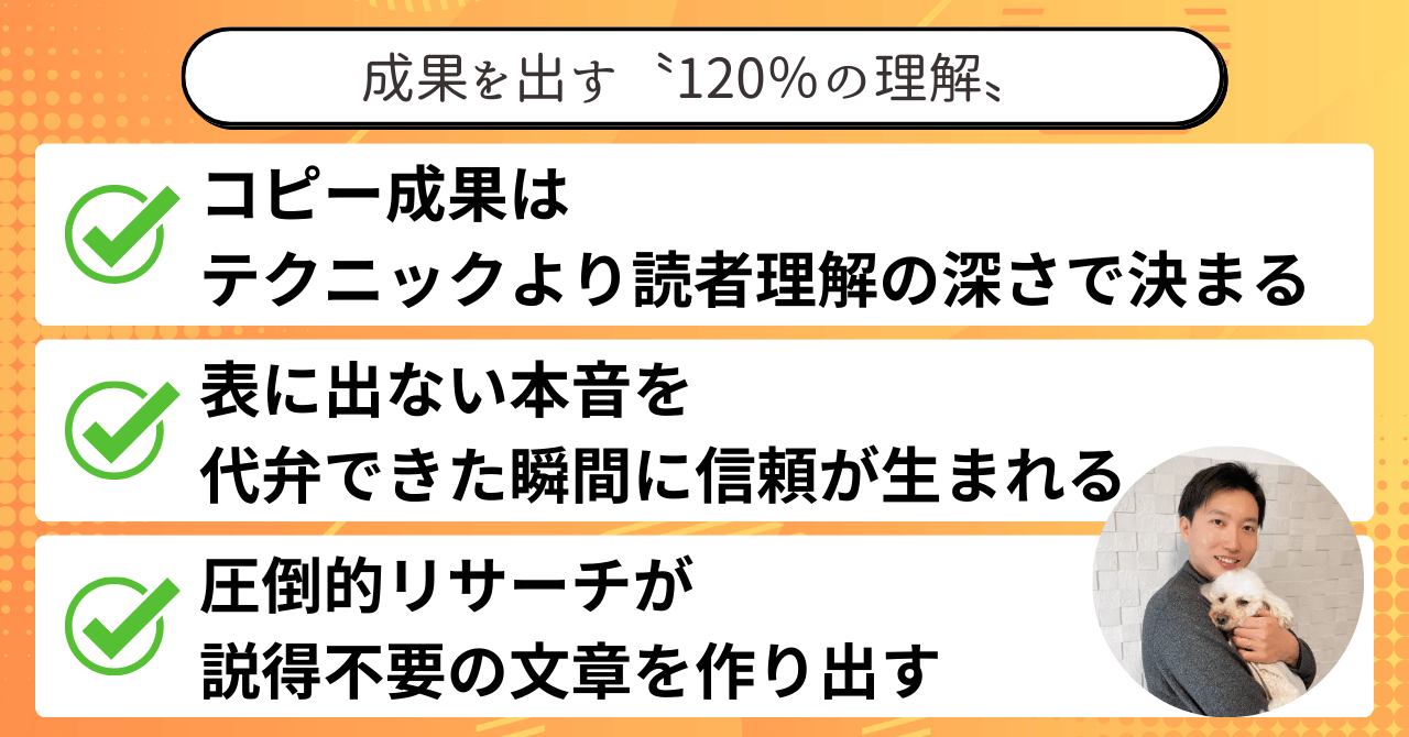 コピーライティングの成果は文章力や表現力よりも理解の深さに比例します。