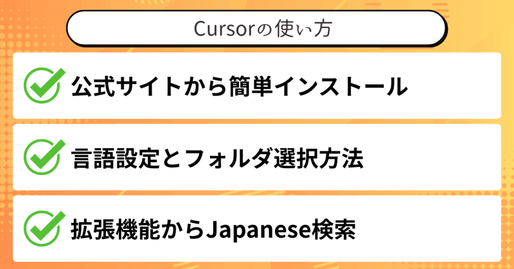 - Cursorは画面がわかりやすく日本語化も可能