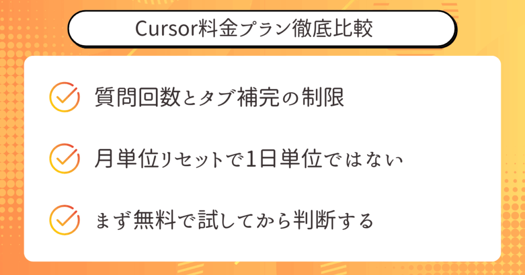Cursor料金プラン徹底比較〝無料版でどこまでできるか〟