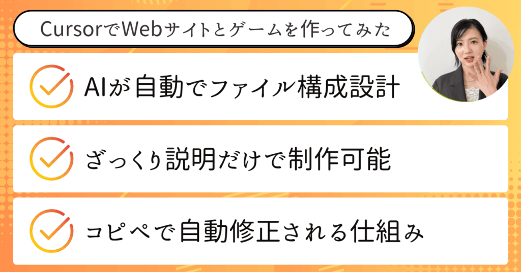 この〝ファイル操作〟ができることが、他のAIツールにはないCursorの最大の強みなんです。