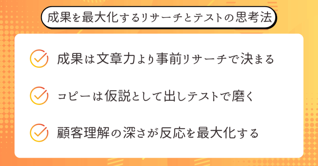 コピーライティングは、一発勝負ではなく検証を重ねる技術です。
