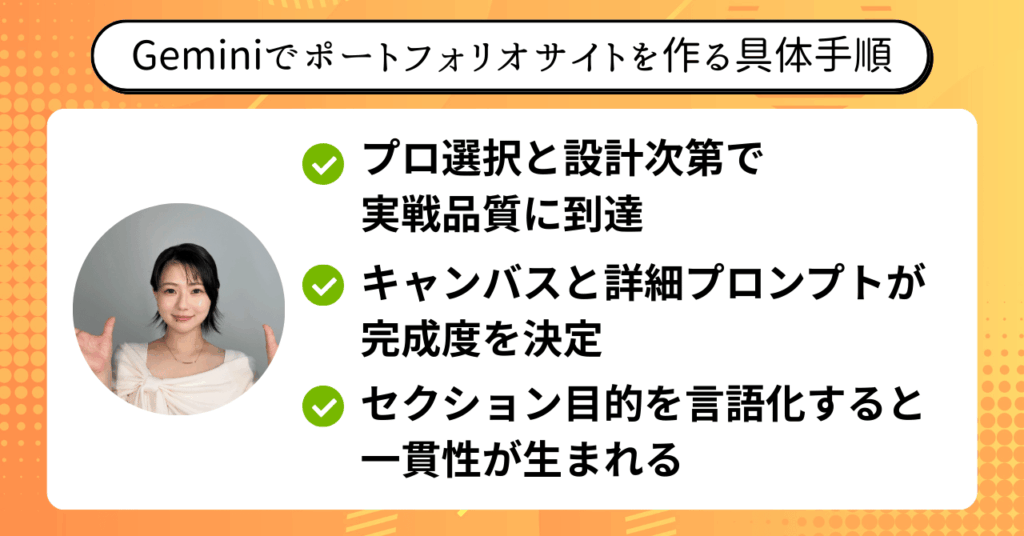 この記事では、〝Gemini 3.0を使ってウェブサイトを作り、実際に案件を獲得するまでの流れ〟を、最初から最後まで解説してきました。