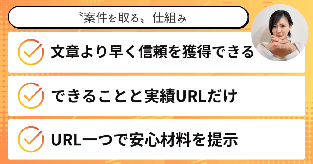 URLを1つ送るだけで、「この人はちゃんとしていそう」という信頼を獲得できる状態が完成します。