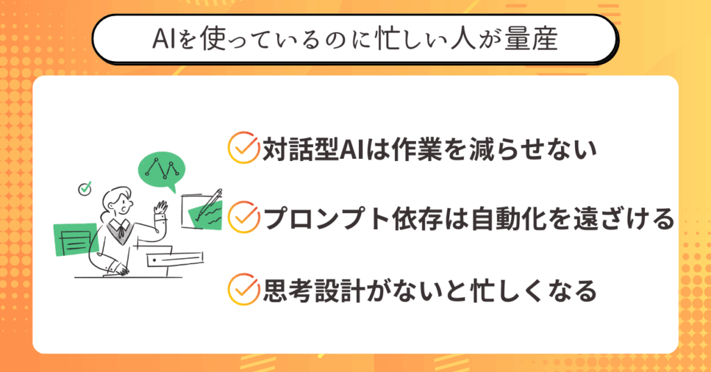 その結果、AIを使っているはずなのに忙しいという、矛盾した状態に陥ってしまいます。