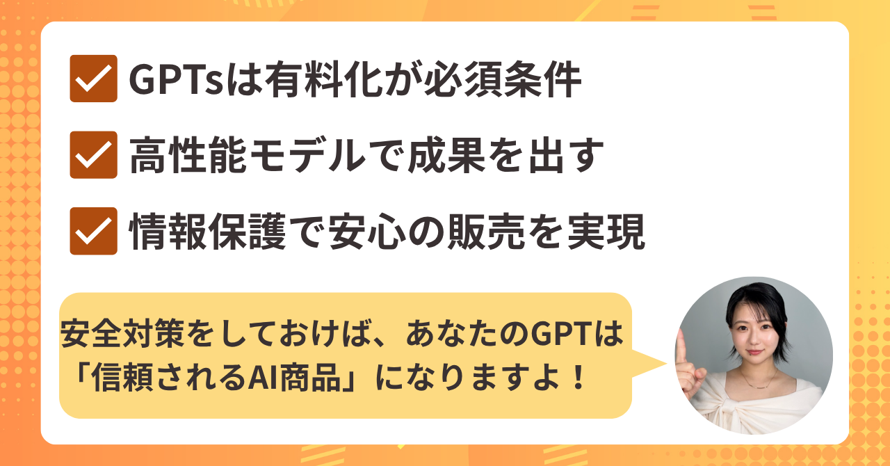 ここまでGPTsの仕組みや販売方法、そして売れやすい特徴を解説してきました。