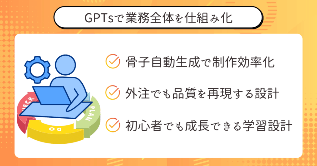 GPTsは、単なる便利ツールではなく、「使えば使うほど資産価値が高まる業務の自動化装置」だといえます。