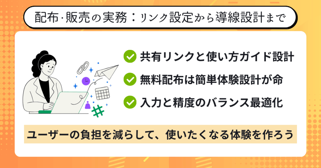 無料配布する際も、フォーム申請やDM配布など、受け取り経路を管理するだけで不正共有を大幅に防げます。