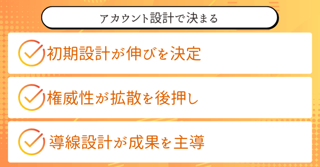 つまり、伸びるかどうかの9割は、アカウントを作る前の設計段階で決まります。