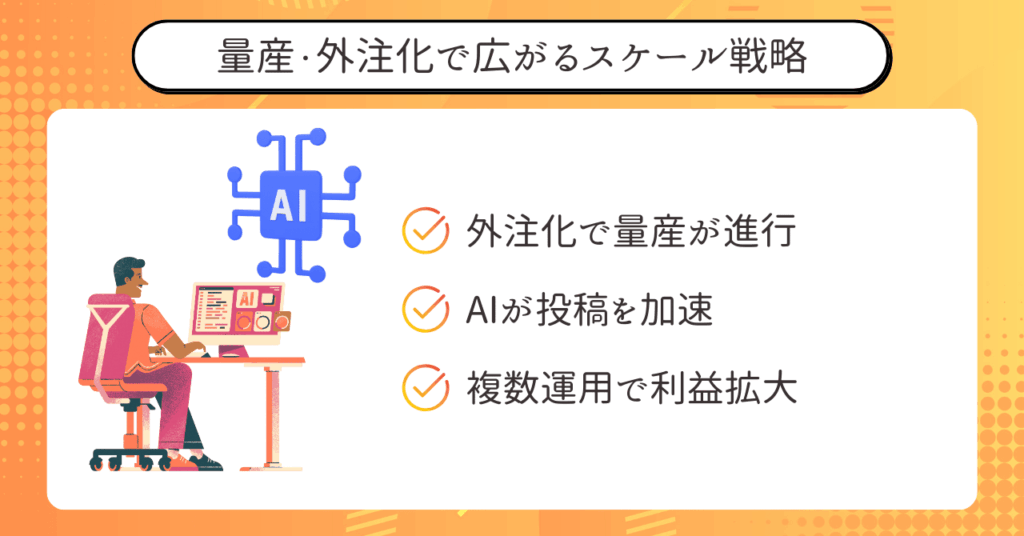さらに、外注化とAIを組み合わせれば、複数アカウントを同時に運用する負担はほぼゼロです。