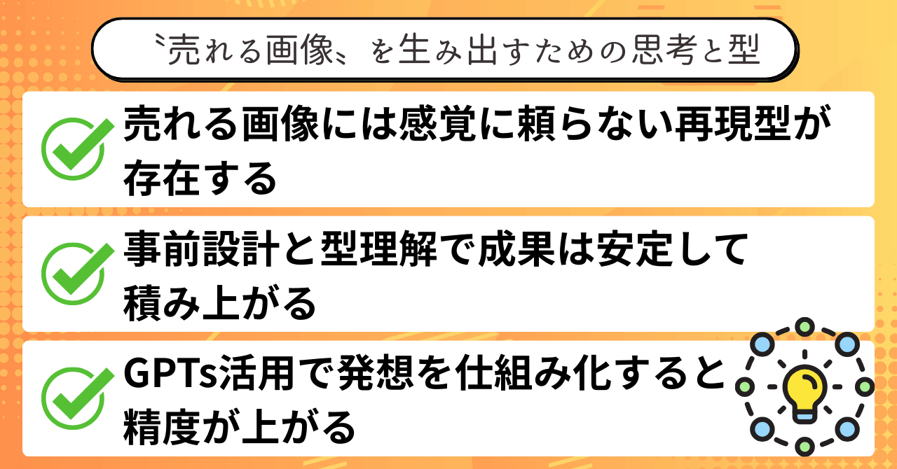 売れる画像には型があり、事前設計を行うことで成果の再現性は誰でも高めることができます。