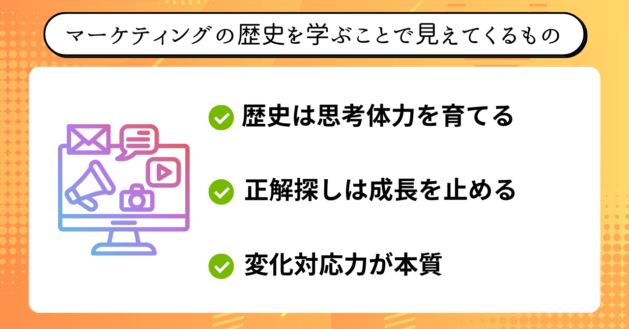 マーケティングの思想や本質を理解することで、前に進み続けられるのです。
