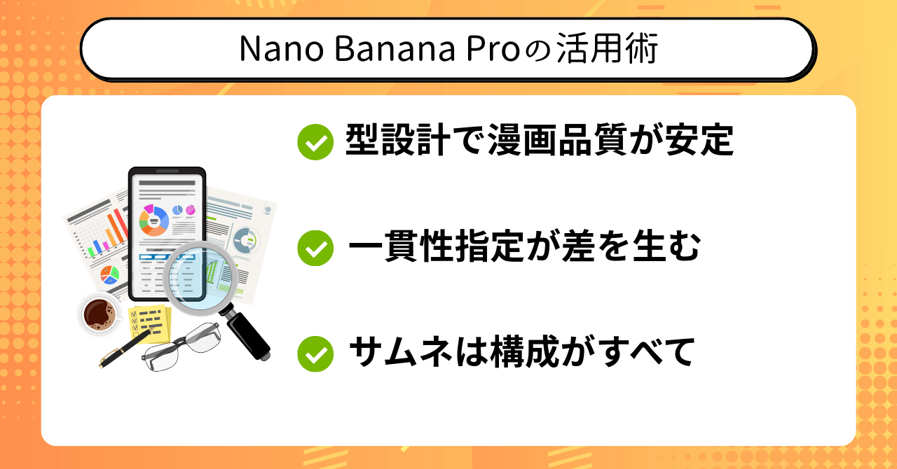 プロンプト設計や型づくりの重要性について具体的解説があり、Nano Banana Proの“型化・仕組み化”という思考法を理解するうえで参考になります。