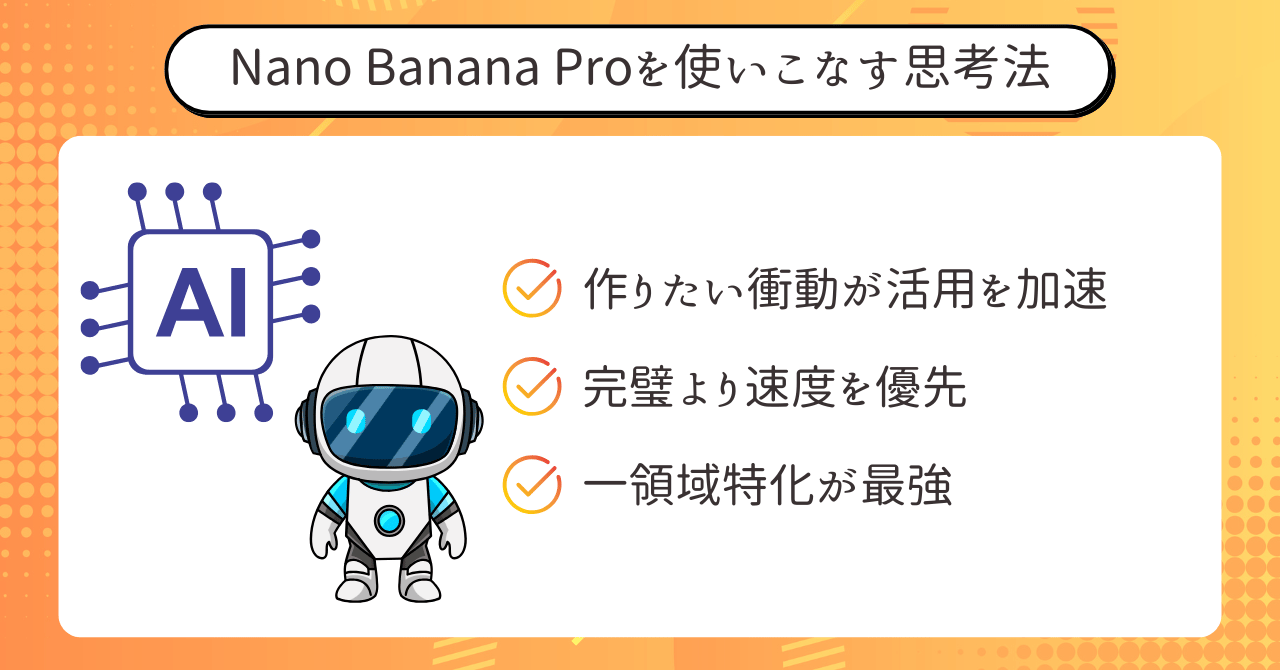 本当に差がつくのは、Nano Banana Proをどう捉え、どう位置づけるかです。