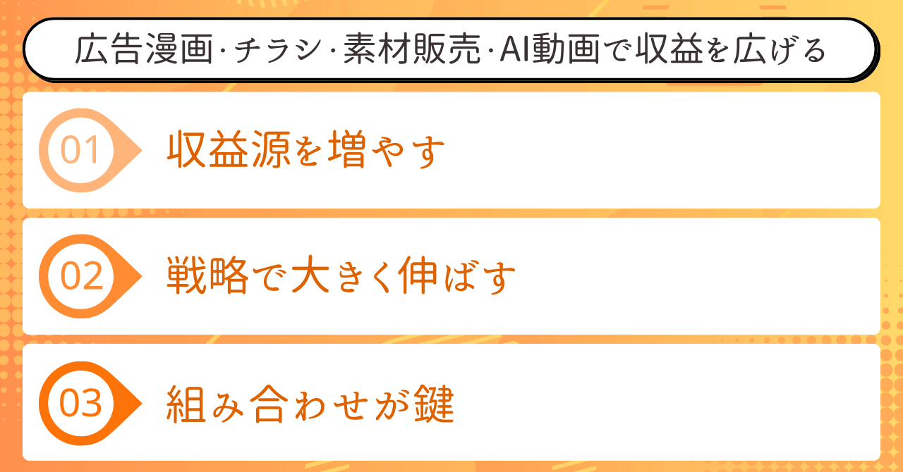 広告漫画・チラシ・素材販売・AI動画で収益を広げる